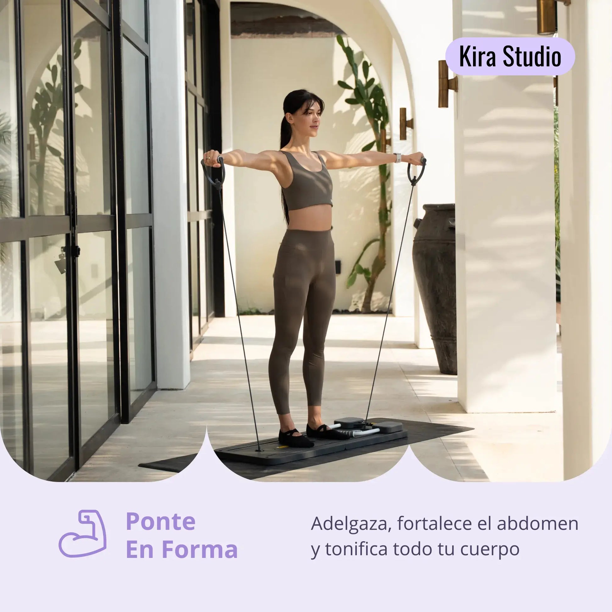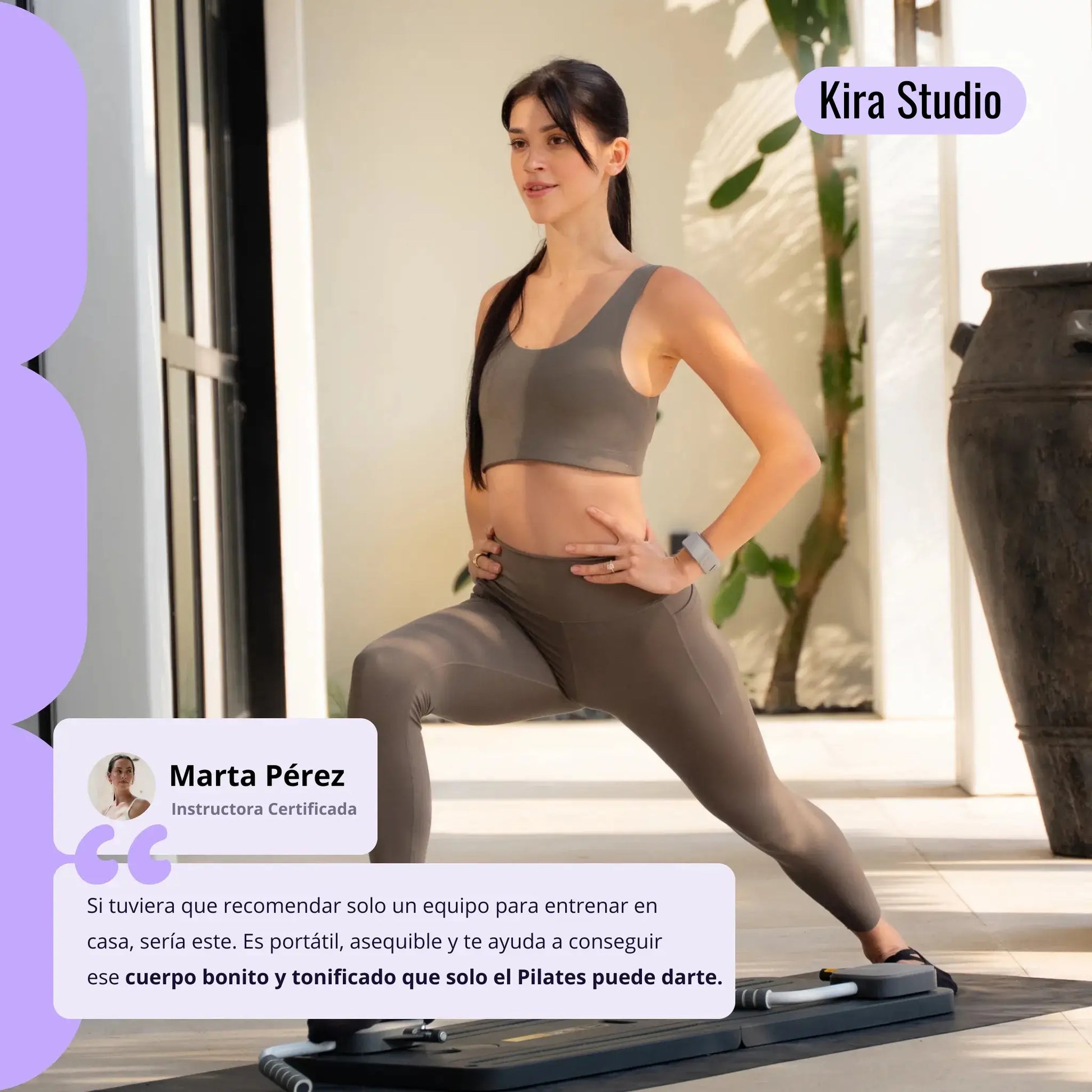Es compacta, pero muy resistente. Ha sido diseñada y aprobada por instructoras certificadas de Pilates, para que tengas en casa la misma calidad que en un estudio profesional.