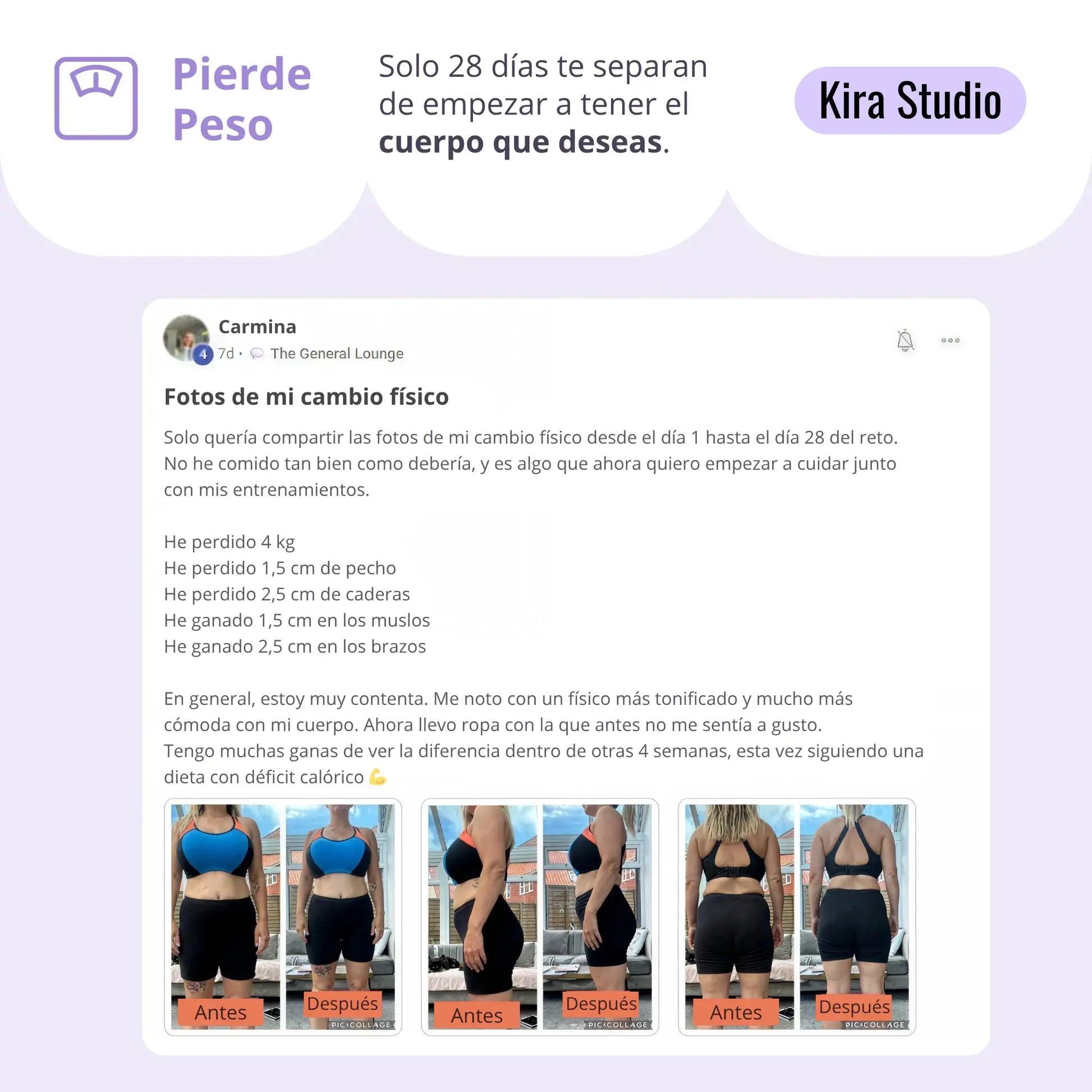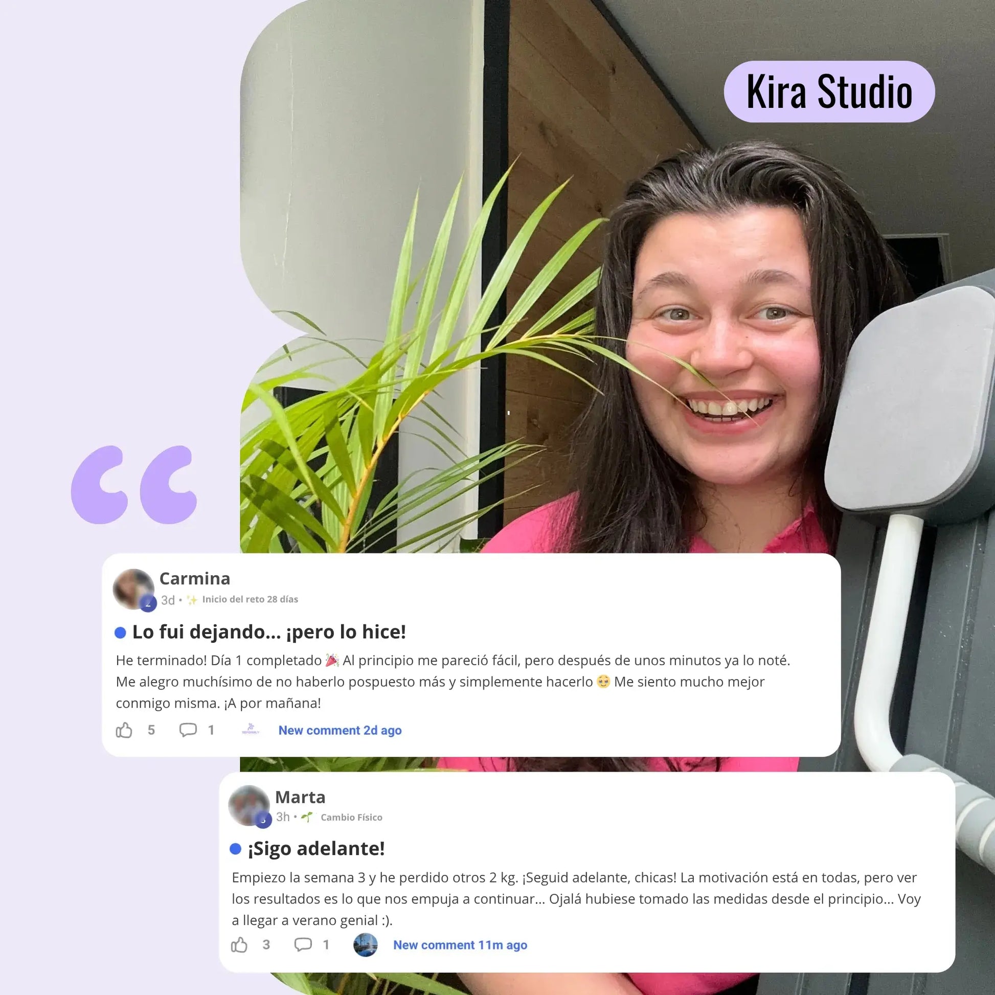 No lo harás sola. Tendrás una comunidad que te acompaña, entrenamientos guiados desde casa que realmente enganchan y resultados visibles dedicando solo 20 minutos al día.